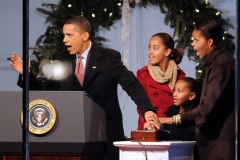 12月3日,美国华盛顿,美国总统奥巴马与家人按下按钮,点亮白宫的圣诞树。 图为美国总统奥巴马一家出席白宫圣诞树亮灯仪式。 图为美国白宫门前的圣诞树被点亮。...