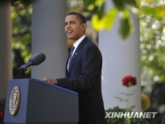 资料图片:10月9日,美国总统奥巴马在白宫玫瑰园发表讲话。当日,奥巴马荣获诺贝尔和平奖。新华社记者张岩摄 奥巴马将出席哥本哈根联合国气候变化大会 美国白宫...