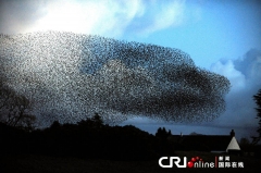 2009年11月3日,英国格雷纳,迁徙的椋鸟。...