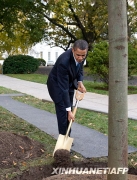10月28日,美国总统奥巴马在华盛顿白宫北草坪上植树。美国前总统布什曾于2008年4月在同样的位置种下一棵树,但是树木未能成活。新华社/法新 10月28日,美国总统...
