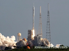 10月28日,在美国佛罗里达州肯尼迪航天中心,战神I-X火箭发射升空。战神I-X是美国下一代运载火箭战神系列火箭的模型火箭。新华社/路透 10月28日,战神I...