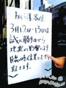 东京商店门口的告示 今天是日本-经典游旅游团到达日本的第四天。日本发生9级地震的当天,团里共33名北京游客在东京市感受到了强大的地震冲击。当晚,旅游团改变...