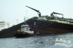 一艘巴拿马油轮在埃及苏伊士港断裂为两段