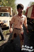 8月15日,一名身上沾满血迹的男子匆匆离开阿富汗喀布尔发生爆炸事件的现...