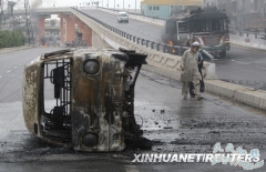 8月17日,在巴基斯坦卡拉奇,人们走过因一武装组织领导人身亡而被闹事者烧毁的汽车。巴基斯坦警察和一个穆斯林逊尼派武装组织表示,这个被取缔的穆斯林逊尼派武装组织的领导人阿里谢尔海德里当天在参加完一个集会后返回住所时遭遇伏击身亡。 8月17日,在巴基...