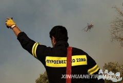 8月17日,在希腊首都雅典以北约120公里的希瓦市,一名消防员指挥直升机扑救山火。希腊中部地区发生的森林山火已经损毁了大片树林和田间房屋,并危及到一些村民的安全。 8月17日,在希腊首都雅典以北约120公里的希瓦市附近,一架直升机在扑救山火。 8月17日,...