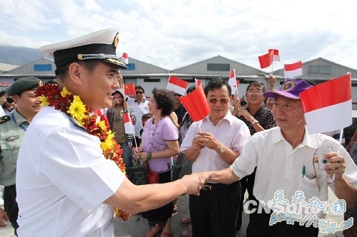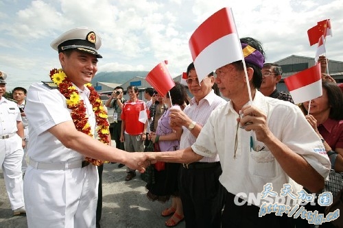 印尼华侨华人欢迎中国海军广州舰。