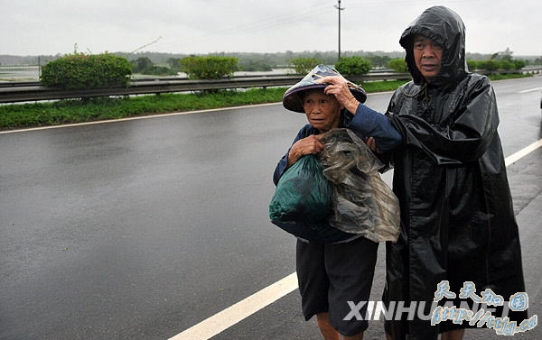 8月7日,海南省儋州市东成镇羊坊村的村民们正在撤离。新华社记者 郭程 摄