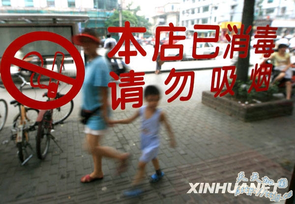 8月18日,行人从上海市江苏路上一家贴有禁烟标识的商场门前经过。新华社记者 陈飞 摄