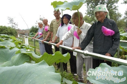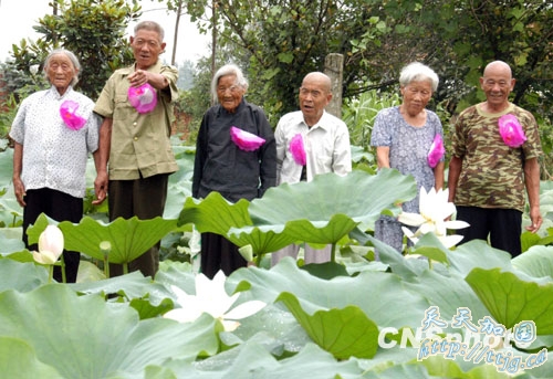 2009年8月18日,河南新蔡县宋岗乡敬老院为3对五保老人举办集体婚礼,相恋多日的老人幸福地走到了一起。据新蔡县宋岗乡敬老院院长卢金照介绍,当他 发现院内戴永全、袁梅氏老人,王善国、李徐氏老人,王进民、张唐氏老人在日常生活中互帮互助,逐渐产生感情,遂有作伴之意,他就积极从中牵线做媒,巧点“ 鸳鸯谱”,帮老人们圆了夕阳恋之梦,并在风景优美的荷花园为他们举办了结婚仪式。