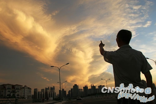 2009年8月19日傍晚,雨后的北京城出现火烧云奇观。