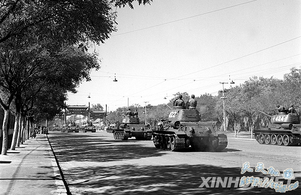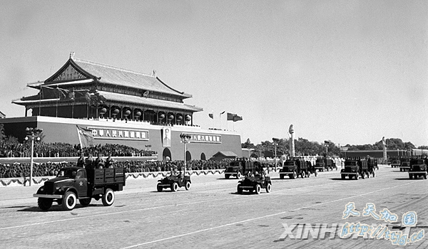 1952年10月1日,中国人民解放军机械化部队经过天安门广场。