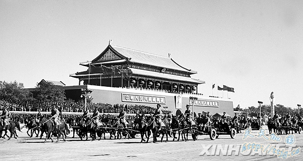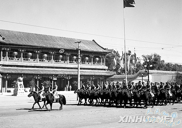 1952年10月1日,中国人民解放军骑兵部队经过新华门。