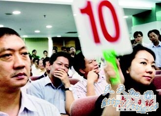 拍卖现场开发商叫价。记者 梁文祥 摄(南方日报)