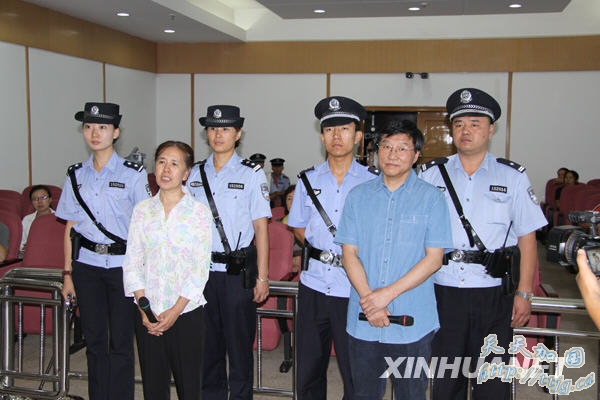 8月21日,赤峰市原市长徐国元(前右)和其妻李敏杰(前左)在包头市中级人民法院接受一审宣判。