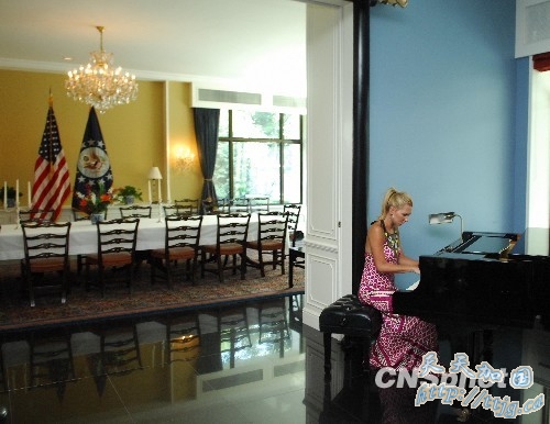 8月22日下午,美国新任驻华大使洪博培在北京美国大使馆新闻处举行到任媒体会。会后,洪博培的大女儿玛丽安用一曲拉赫玛尼诺夫的《音画练习曲Op.39 No.9》迎接媒体宾客的来访。