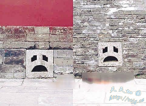 故宫里的排水口和通风口有很多样式,其中以古代圆形钱币的图案居多。目前,还有很多排水口和通风口只是空空的黑洞,没有任何装饰。那么这种新发现的“囧”字洞呢,佟研究员无奈地说,这只能说是建筑工艺水平下降的结果。