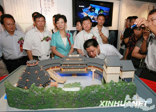 8月24日,嘉宾在参观上海世博会贵州馆模型。