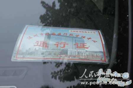 现代商务车窗前放着一张通行证,右上角标注着“中国移动瓯海分公司”