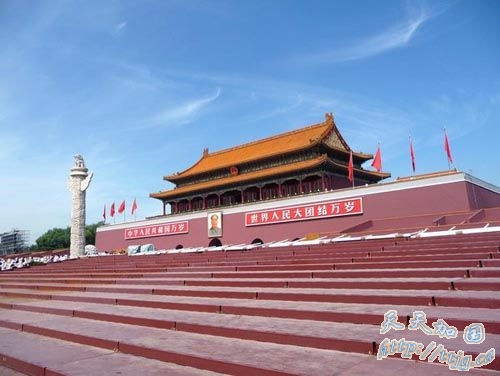 新华网9月10日报道 9月9日,天安门城楼两侧观礼台前搭建起了数百平方米的临时观礼台。红色基座,白色栏杆,基本与原观礼台保持了同样的风貌。