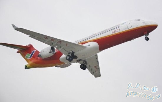 ARJ21是中国首次按照与国际接轨的适航标准进行研制、得到美国联邦航空局(FAA)受理的飞机项目,也是中国第一个销往欧美发达国家的民机产品。目前,ARJ21的海内外订单总量为208架。其中,美国最大飞机租赁公司通用电气金融航空服务有限公司(GECAS)订购了25架。