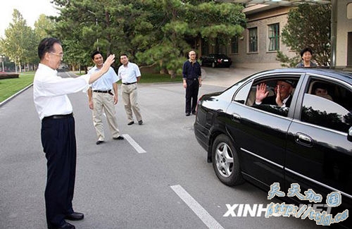 晚霞夕照,微风拂面。温家宝站在车旁,挥着手,微笑着,目送达吾提·阿西木离去……
