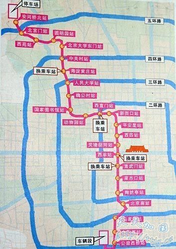 北京地铁4号线上有4个换乘站,从海淀到丰台,4号线中间经过西城和宣武,可以说地铁4号线线路上有文物保护,有多线换乘;有高校科技,有南城发展,京西交通欠发达的历史,有望随着4号线的开通改变。