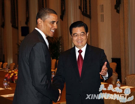 9月22日,中国国家主席胡锦涛在纽约同美国总统奥巴马举行会晤。