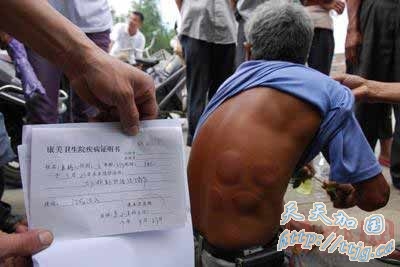 记者见苏辉人右小腿处有几道明显的鞋印,后背有拔火罐的痕迹。康美医院的病历显示,苏辉人多处软组织挫伤,医生做出了拔火罐及敷药等处理。