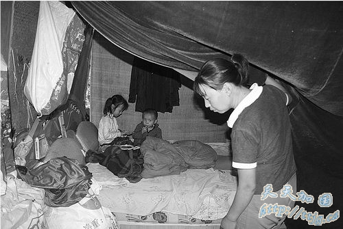 老人小孩在窝棚里睡不着