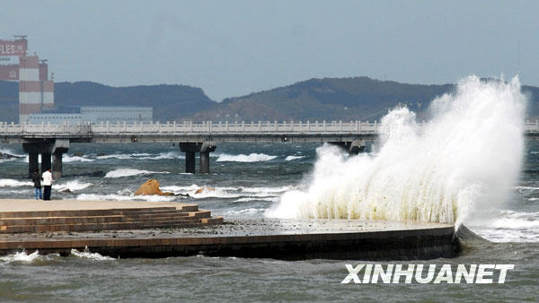 10月19日,烟台海韵广场巨浪滔天。