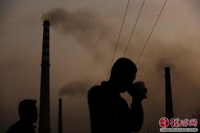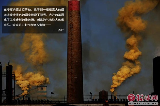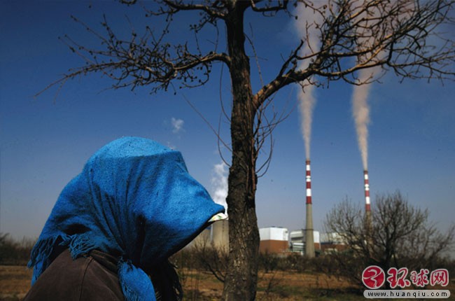 宁夏石嘴山湖滨工业园区高大的烟囱上粉尘从天而降,当地居民叫苦连天,他们出门就得做好防范措施 2006年4月22日