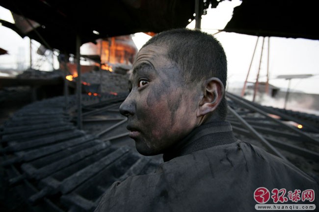 河南安阳市范家庄离炼钢炉只有一墙之隔,村里每天都下铁雨,村民在这污染严重的环境下生活 2008年3月24日