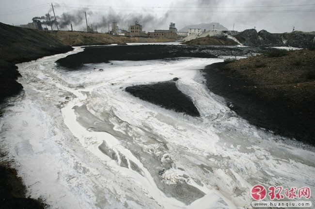内蒙古拉僧庙工业园区每天大量的工业污水流向黄河滩 2005年7月26日