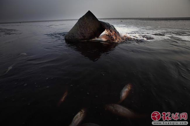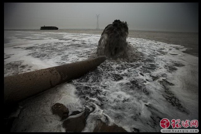 在黄海海岸线上,无数的污水管道埋在海滩上,甚至延伸进深海 2008年4月28日