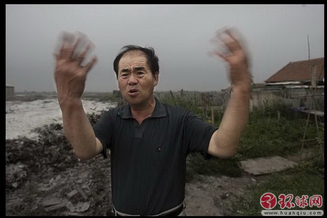 江苏连云港盐场工人在愤怒地说,风往我们这边吹时,化工厂排入的气体又臭又刺鼻受不了,到了晚上毒气放得更多 2008年7月19日