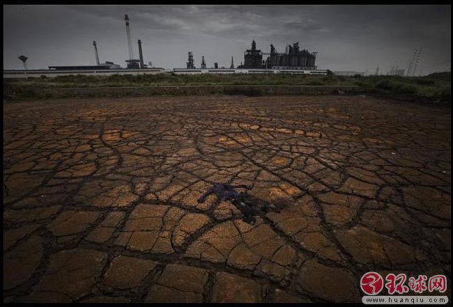 安徽省马鞍山化工园区长江边上被化工厂污染的土地2009年6月26日