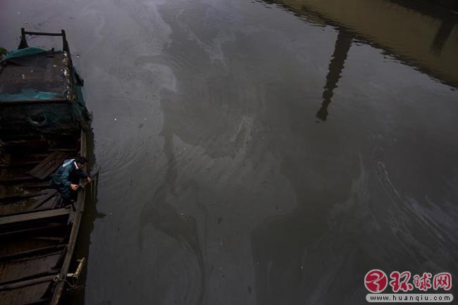 浙江萧山化工园区的工业污水排放河道后再经过河闸排放钱塘江 2009年4月24日