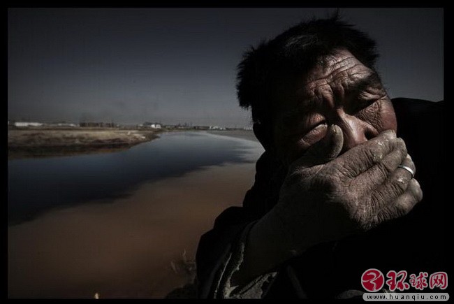 在黄河边放羊的老汉受不了第三排水沟散发的臭气 2006年4月23日