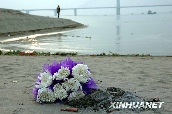 10月26日,江滩边摆放的鲜花寄托着人们对年轻英雄的怀念。