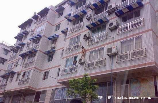 记者看到,在照片中,一男子裸体,站在2楼空调外机上,旁边窗户处,一个男子正指着他说话,一看就让人肯定此裸体男子是偷情被人家老公抓住了。帖子出来后,立刻引爆网络。