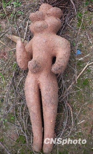 10月27日上午,四川阆中市江南镇大田坝村63岁的老农郑德训向记者展示了他5天前挖出的一株酷似人形的何首乌。