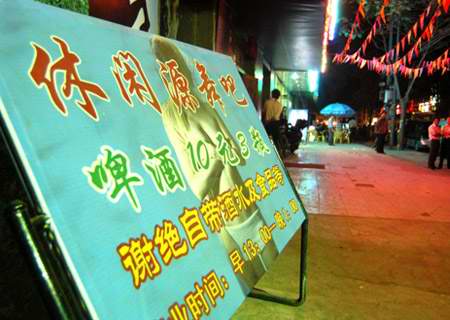 记者环顾了一下酒吧,100多张啤酒桌前坐着不少社会青年和民工,其中也有不少戴着眼镜的学生模样的客人。记者问川学生来这里的多不多,随行的胖子接过话说:“你看,那边的几桌都是我们学校的学生。他们是我女朋友一个班的。幸亏他们不认识我,不然我就惨了。”说到此,川有点不好意思地说,前几次他们来的时候,每次都碰上了他的一个老乡。前两次彼此都还有点尴尬,后来就放得开了,甚至偶尔还在一起对里面的小姐进行一番点评。 可能是周末的缘故,今天的人特别的多。离记者酒桌不远的地方,有4个小包厢,断续有小姐和客人进进出出。酒喝得差不多后,川喊来了一个长相娇好的小姐,就是他们所说的3号。川指着记者,交代着这位名字叫做安琪的小姐:“我朋友今天第一次来,你好好招待一下。我朋友比较内向,你主动一些哦。”