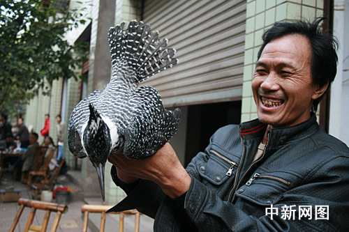 有野生动物保护常识的王秀奎小心翼翼地将鸟儿带到熟人家,借了个口袋把鸟放在袋中。从竹海镇回长宁镇的途中,有人把鸟买下来,但汪秀奎不同意。他说,要等林业部门确认了,是放归自然还是养起,由林业部门定。汪秀奎担忧地说,“鸟儿已经一天没吃东西了,不清楚这鸟要吃啥,不敢随便喂食,喂了水,但鸟不吃,怕鸟死了,那太可惜了。”70岁的爱鸟人士罗顺堂,有20多年的喂鸟历史, 面对“怪鸟”他左看右看,连连摇头说“不认识”。