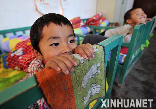 家庭不孤独 彦贵趴在自己的小床上(11月3日摄)。 新华社记者 王鹏摄