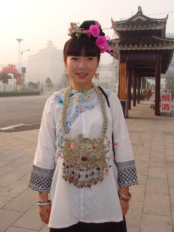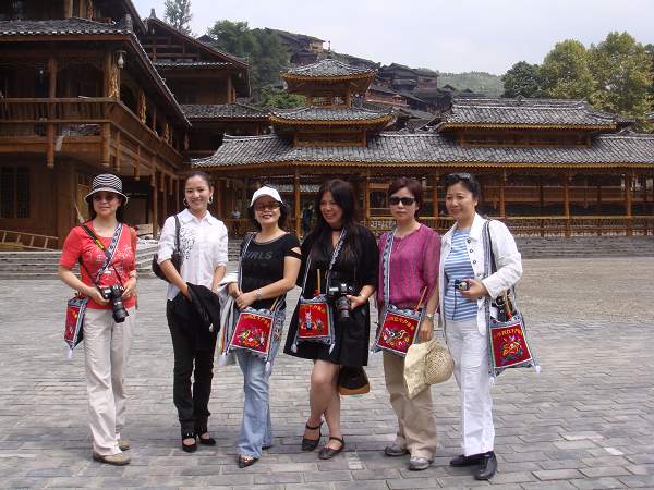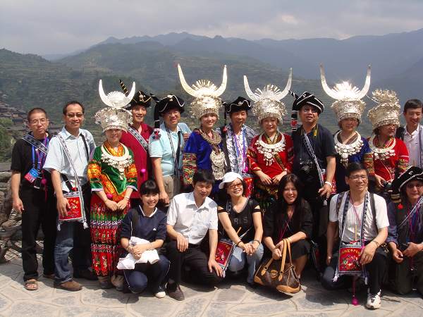 黔东南州侨办的干部小左从我们进入州界就开始陪同我们。一路上她给我们详细介绍了黔东南州的风貌和当地少数民族风情,比专业导游还要熟悉。她自己也是来自侗族的姑娘。当天因为去苗寨,所以她穿着简装;第二天一早,她把从母亲和外祖母那里继承的、好几公斤重的侗族全副服饰穿上来送我们,让我们非常感动。那些相传了几十年甚至上百年的纯银首饰,有近十万元的价值。我们问她愿意一辈子留在黔东南吗,她说她前年曾经考过中央民族学院的研究生,只是英语没有过关才没被录取。等将来有时间恶补之后,还想再接着尝试。