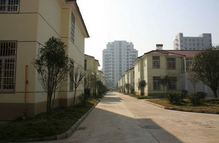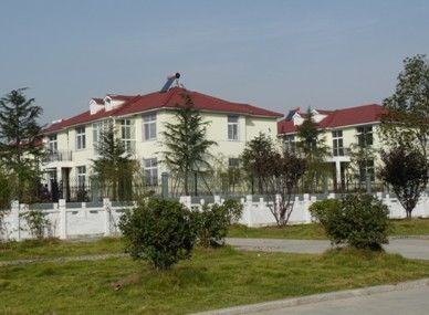 在滨河小区的北边,是“玉安花园别墅群”,该别墅群共3排2层联体别墅,每排24套,共72套。