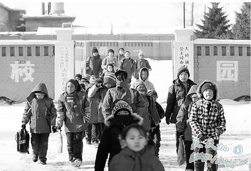 中午,南道小学的学生们背着书包回家 本报记者 王强 摄