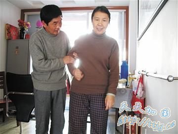 宋增全一边安慰妻子,一边积极地为她做康复训练。练习走路时,宋增全把绳子绑在妻子的腿上,扶着她,拉一下绳子,往前走一步;按摩的手法宋增全都学会了,每天从头到脚为妻子按摩一遍;讲话是从拼音字母开始一点儿一点儿教的。“你听她说话有青岛口音吗?因为是我教的,所以带着枣庄口音。”宋增全说。