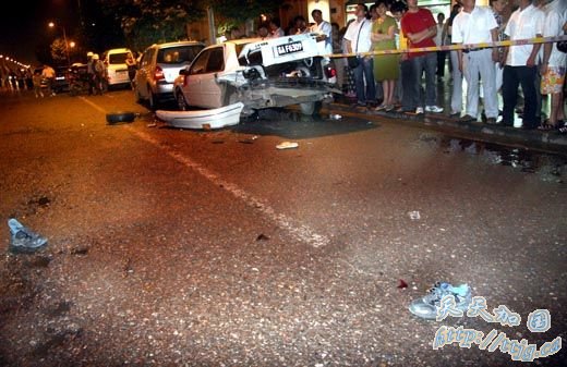 被撞汽车不远处多只死伤者的鞋子:人民图片网